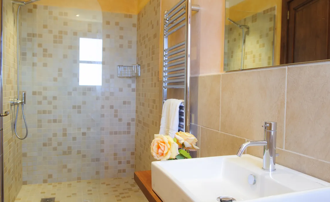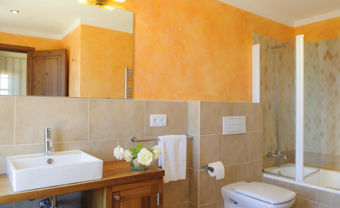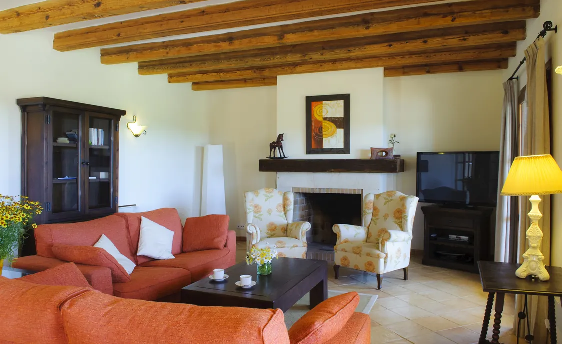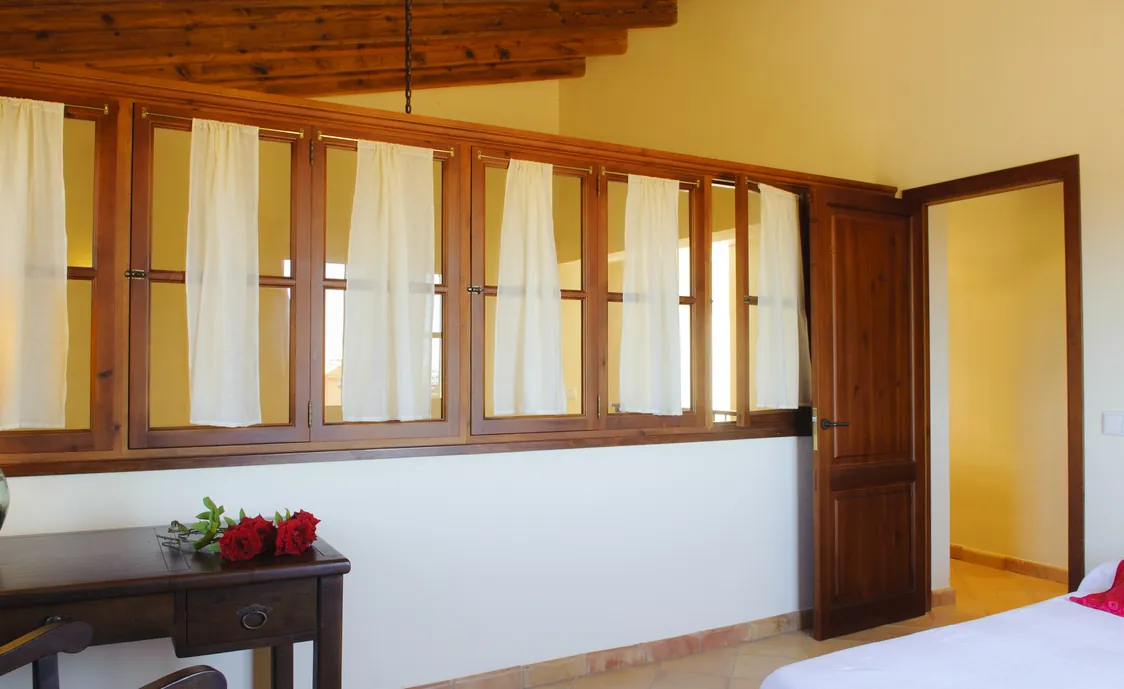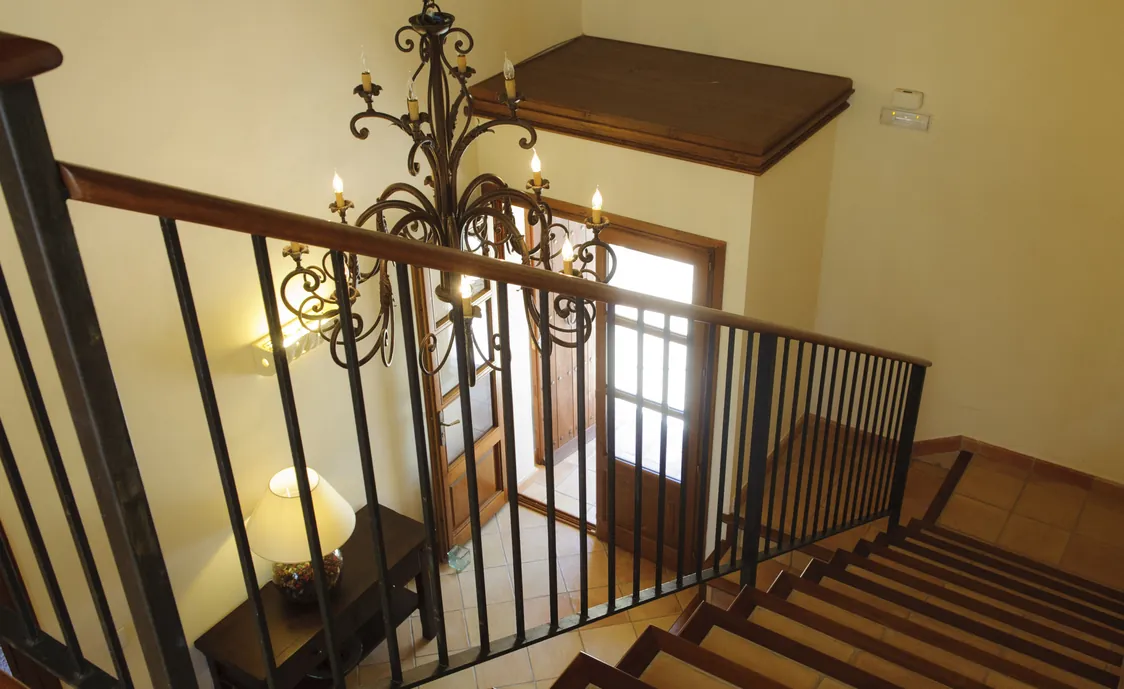 Vom Innenhof gelangen Sie durch eine Eichentüre in den einladenden Eingangsraum. Von hier erreichen Sie das gemütliche Wohn- / Esszimmer mit Sofas, Kamin, Plasma-Tv, Wifi Internetzugang, Playstation 2, einen soliden Eichenholztisch und Türen auf die vordere Terrasse. Die Küche ist mit allen modernen Elektrogeräten ausgestattet und hat sehr schöne blaue eingebaute Schränke. Ein grosses Doppelbettzimmer mit ensuite-Bad, eine Toilette und ein Waschraum ergänzen das Erdgeschoss. Im ersten Stock werden Sie vier weitere Schlafzimmer vorfinden. Eines mit Einzelbetten, ensuite Badezimmer, eingebauten Schränken und Zugang auf die obere Terrasse. Zwei weiterer Schlafzimmer haben auch je zwei Einzelbetten, und Eines hat einen wunderschönen Balkon mit toller Aussicht. Das vierte Zimmer ist mit zwei Einzelbetten ausgestattet, verfügt jedoch nicht über ein Bad und muss somit das en suite Bad eines anderen Schlafzimmers mit nutzen. Alle Schlafzimmer haben Klimaanlage und es steht auch eine Zentralheizung zur Verfügung.