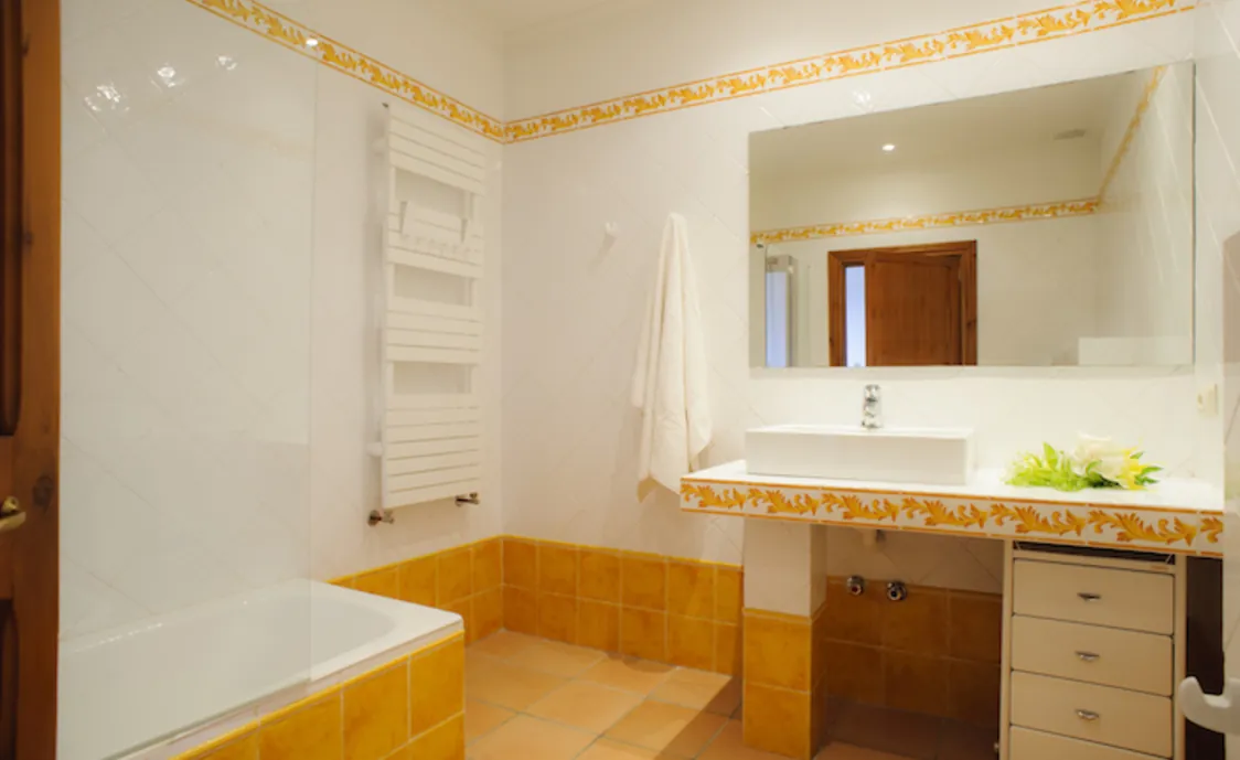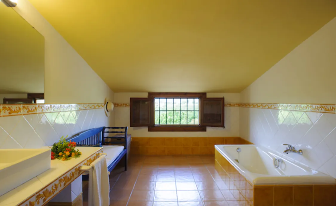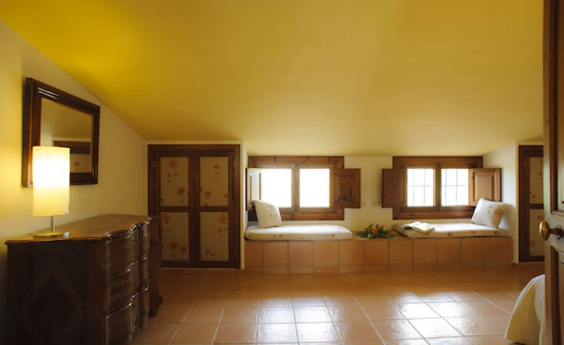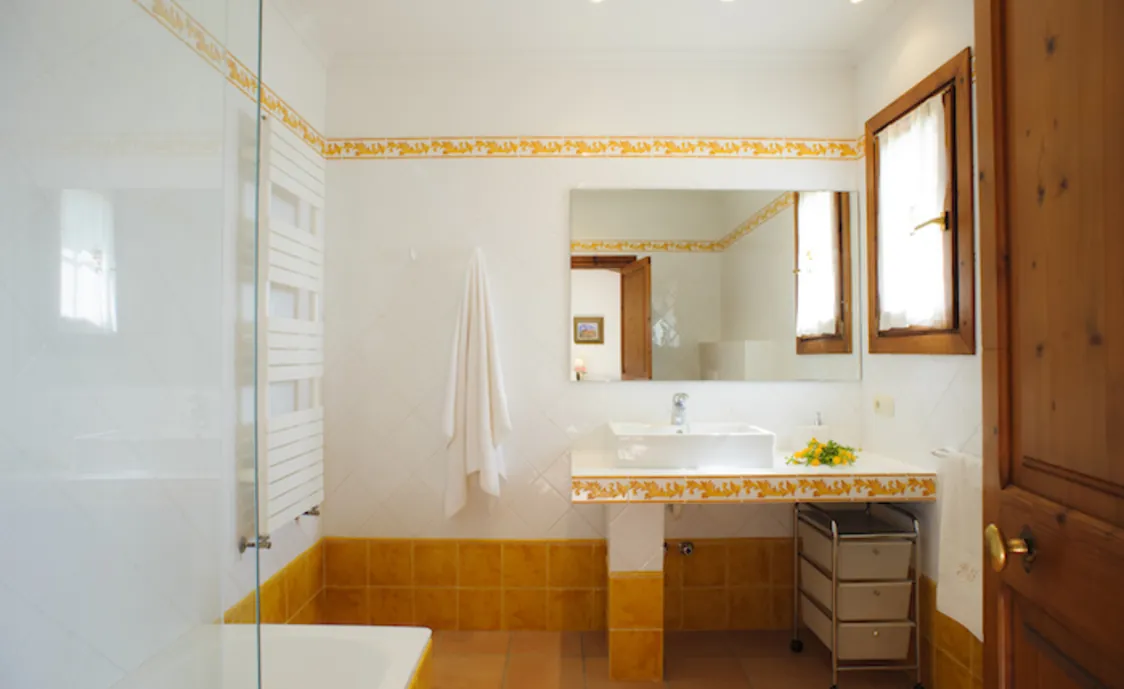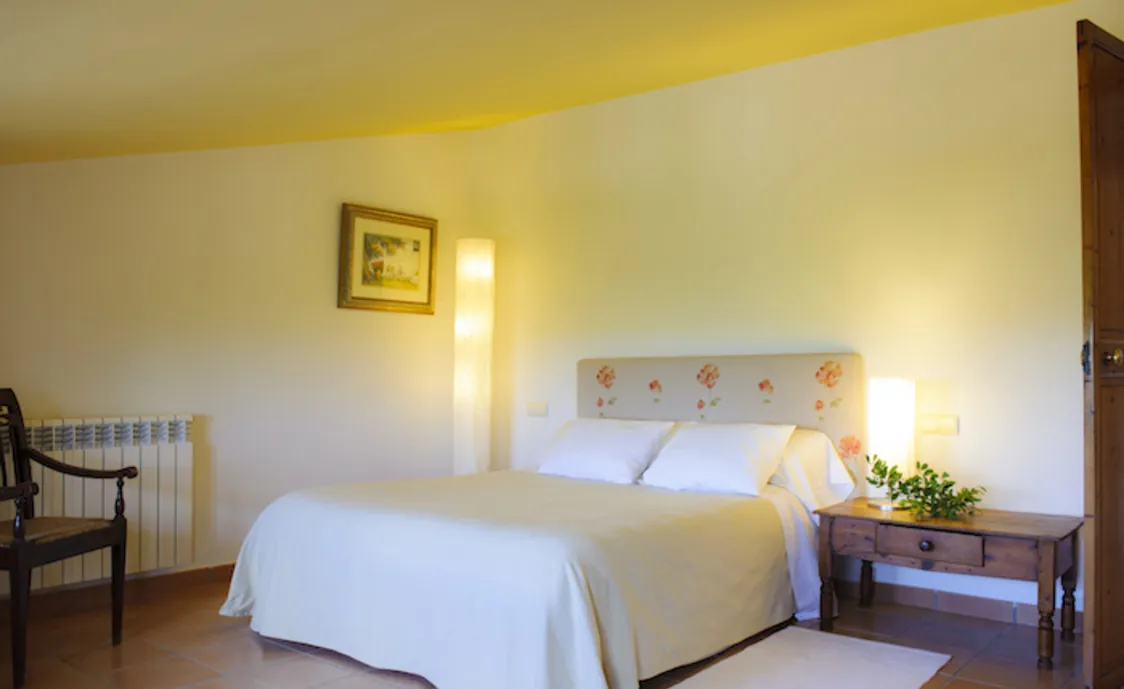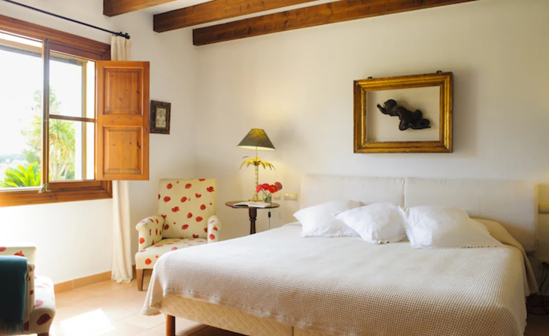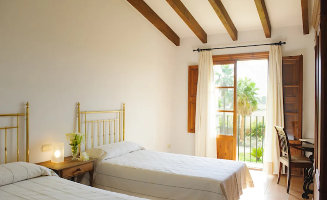 Im ersten Stock befinden sich drei Schlafzimmer. Das erste ist ein schönes geräumiges Schlafzimmer mit antiken Doppelbett mit Baldachin, en-suite Badezimmer und Fenster mit Blick auf den Vorgarten. Das zweite ist ein Doppelzimmer mit Fenster mit Blick auf den Vorgarten und en-suite Badezimmer. Das letzte ist ein geräumiges Doppelzimmer mit Dachschräge und Fenster mit Blick auf die kleine Stadt Campos in der Ferne. Das Schlafzimmer hat ein schönes en-suite Badezimmer mit Badewanne und separater Dusche.