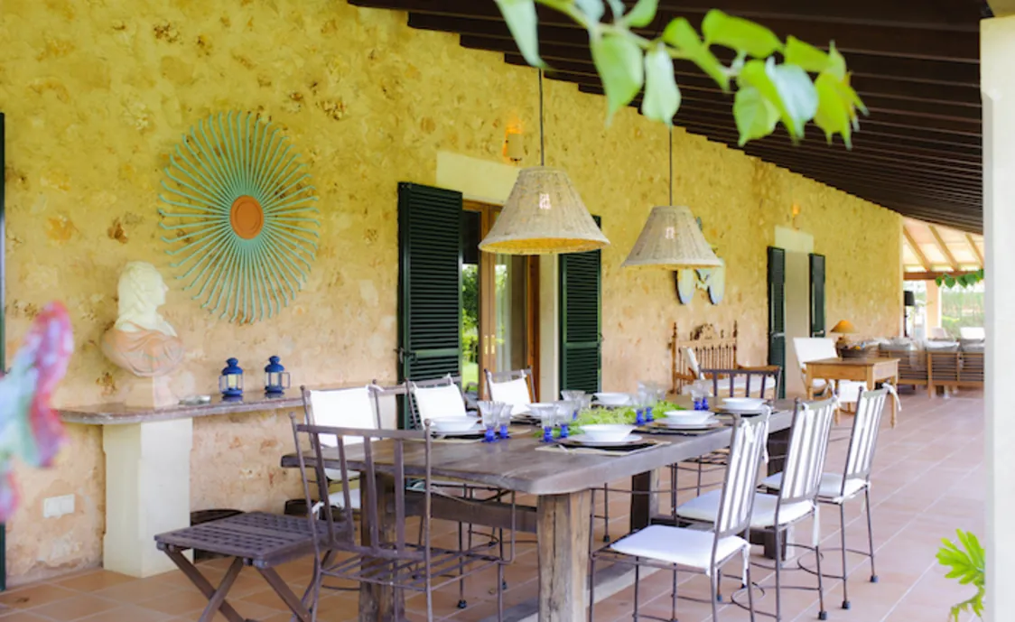 Dieses wunderschöne Landhaus befindet sich in einer ruhigen ländlichen Lage, 4 km von der typisch mallorquinischen Kleinstadt Campos entfernt. Hier finden Sie Banken, Geschäfte, Cafeterien und Restaurants. Jeden Samstag wird ein Wochenmarkt abgehalten welcher neben Obst und Gemüse aus der direkten Umgebung auch einen Flohmarkt bietet. ”Es Trenc” der größte und schönste Sandstrand Mallorcas mit türkisblauem Wasser ist lediglich 14 km entfernt. Nur wenige Kilometer vom “Es Trenc” entfernt liegt der kleine Touristenort Colonia Sant Jordi. Von hier aus können Sie Bootstouren zur unter Naturschutz stehenden Insel Cabrera unternehmen. Santanyi mit seinen Geschäften, schönen Restaurants, Kunstgalerien und einem grossen Wochenmarkt mittwochs und samstags ist 8 km entfernt.