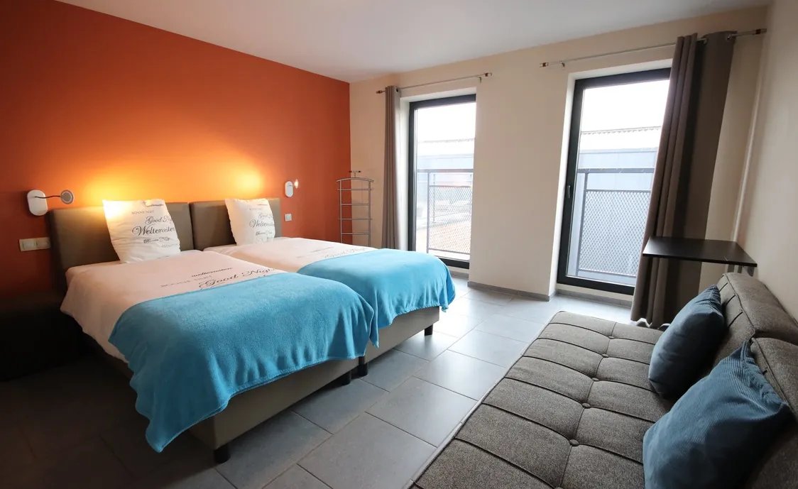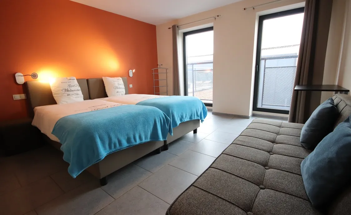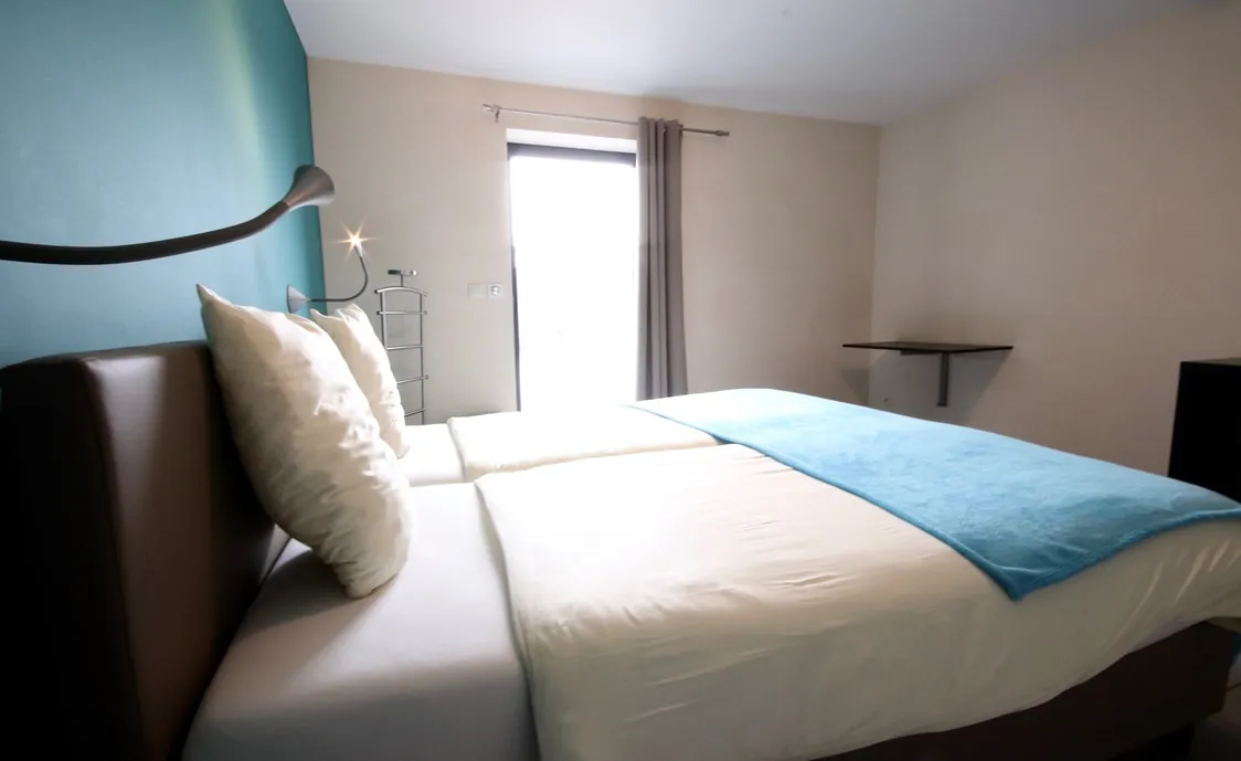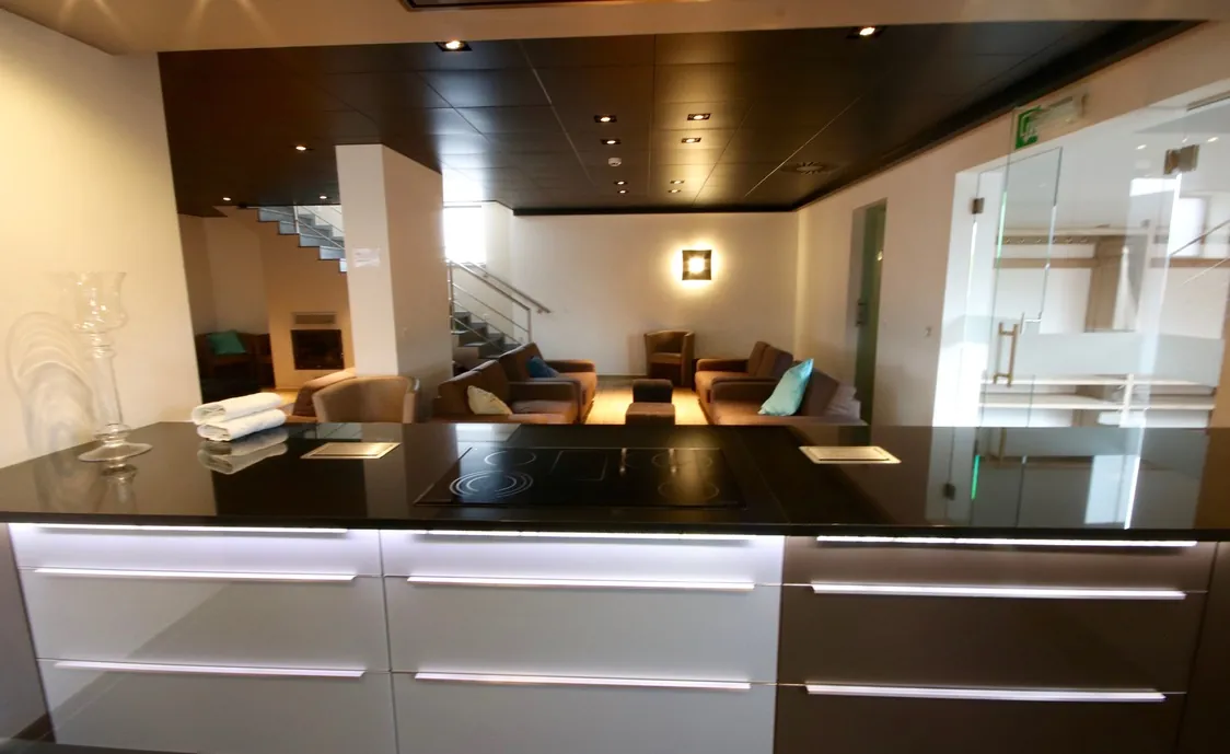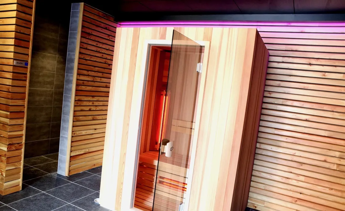 Suite in den belgischen Ardennen mit Außenwhirlpool, der während der Öffnungszeiten des Wellnesszentrums geteilt wird und nach Schließung des Instituts privat genutzt werden kann